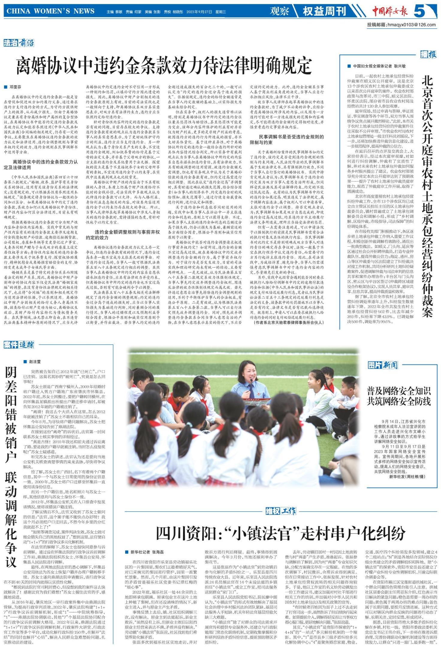 《中国妇女报》(电子版)的一切内容(包括但不限于文字、图片、PDF、图表、标志、标识、商标、版面设计、专栏目录与名称、内容分类标准以及为读者提供的任何信息)仅供中国妇女报读者阅读、学习研究使用,未经中国妇女报及/或相关权利人书面授权,任何单位及个人不得将《中国妇女报》(电子版)所登载、发布的内容用于商业性目的,包括但不限于转载、复制、发行、制作光盘、数据库、触摸展示等行为方式,或将之在非本站所属的服务器上作镜像。否则,中国妇女报将采取包括但不限于网上公示、向有关部门举报、诉讼等一切合法手段,追究侵权者的法律责任。
