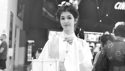 9月23日,在塞尔维亚诺维萨德举行的“汉服节”活动上,一名学生展示汉服。 诺维萨德大学孔子学院首届“汉服节”活动23日在塞尔维亚中北部城市诺维萨德举行,吸引不少当地民众驻足体验。