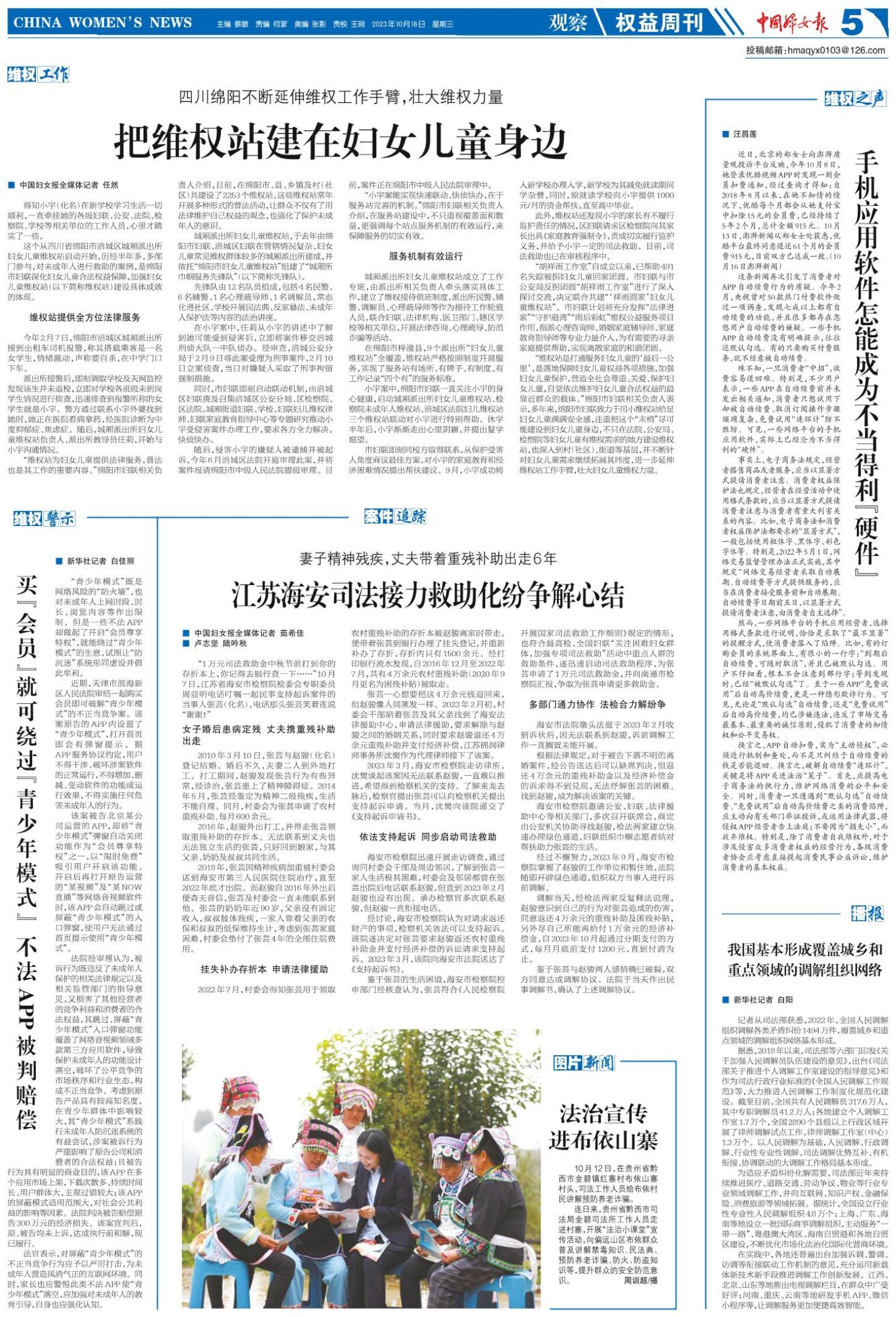 《中国妇女报》(电子版)的一切内容(包括但不限于文字、图片、PDF、图表、标志、标识、商标、版面设计、专栏目录与名称、内容分类标准以及为读者提供的任何信息)仅供中国妇女报读者阅读、学习研究使用,未经中国妇女报及/或相关权利人书面授权,任何单位及个人不得将《中国妇女报》(电子版)所登载、发布的内容用于商业性目的,包括但不限于转载、复制、发行、制作光盘、数据库、触摸展示等行为方式,或将之在非本站所属的服务器上作镜像。否则,中国妇女报将采取包括但不限于网上公示、向有关部门举报、诉讼等一切合法手段,追究侵权者的法律责任。