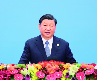 10月18日上午,国家主席习近平在北京人民大会堂出席第三届“一带一路”国际合作高峰论坛开幕式并发表题为《建设开放包容、互联互通、共同发展的世界》的主旨演讲。新华社记者 王晔/摄