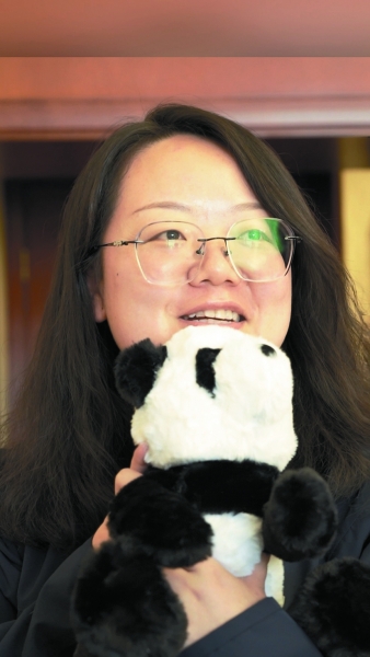 付明霞告诉记者,她平时参与国家公园和大熊猫的保护宣传工作时,都会带上熊猫公仔向孩子们展示,让他们能够对熊猫更有兴趣,从而能够更好地了解如何保护大熊猫。而这一次,她带上两只熊猫公仔和一些特色文创产品,来到了中国妇女十三大报到现场。