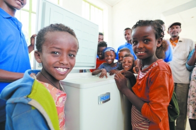 从单一场景到多场景裂变,满足非洲妇儿健康差异化需求。为了让缺电的非洲国家儿童能够安全接种疫苗,海尔生物医疗创新太阳能直驱制冷技术,研发出太阳能疫苗冰箱,为当地儿童构建起全冷链、全天候、全过程的疫苗安全解决方案。该疫苗冰箱即使在43℃的高温环境下断电,箱内温度仍能在120小时内维持在8℃以下。目前,该产品方案已进入80多个共建“一带一路”国家和地区,每年服务数千万适龄儿童接种,帮助提升非洲等欠发达地区的免疫接种率,也推动着全球免疫事业迈向更加公平可及的未来。