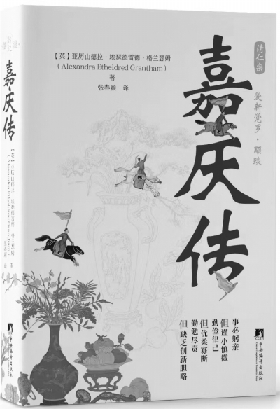 嘉庆一生功绩的颂词里,人们称赞他像上苍一样仁慈,将天子的恩泽散布四方。颂词里还说“他安定边界、平定乱匪。他对犯人很仁慈,关心百姓生活……《嘉庆传》一书是对清仁宗爱新觉罗·永琰,即嘉庆皇帝的研究记述。该书作者亚历山德拉·埃瑟德雷德·格兰瑟姆曾在中国旅居多年,他撰写的这本《嘉庆传》具有较高的真实性、理论性,是20世纪的西方人关于清朝皇室人物的记述中比较重要的一本著作,让我们看到对嘉庆一生的另一种视角解读。