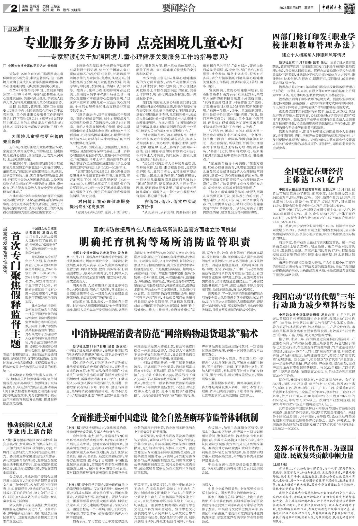 中国妇女报全媒体记者杨娜 发自北京 11月7日,记者从首届以竹代塑国际研讨会上获悉,我国启动“以竹代塑”三年行动,计划将以构建“以竹代塑”产业体系为重点,着力抓好竹林资源培育、竹材精深加工、产品设计制造、市场应用拓展等全链条全要素协调发展,有效提升“以竹代塑”的动能、产能、效能,助力减少塑料污染。