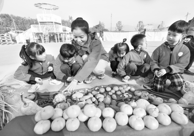 1月15日,孩子们在老师的带领下参观校园丰收节农作物展,学习农作物知识。 当日,浙江省湖州市长兴县李家巷镇中心幼儿园开展“冬日校园 乐享丰收”校园丰收节主题活动。孩子们在老师的带领下参观丰收节农作物展、手工艺品展,感受丰收带来的喜悦。 新华社记者 徐昱/摄