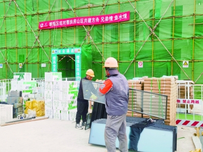 在窦店镇的西侧,京郊著名旅游胜地十渡镇,正在加紧进行应急保障设施建设。记者看到工地上贴着醒目的标语,“朝阳区结对帮扶房山区共建方舟 兄弟情 鱼水情”。十渡镇是“23·7”特大暴雨洪涝灾害的重灾区,根据市委、市政府安排,由朝阳区结对帮扶。