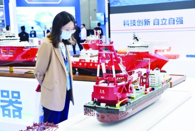 11月23日,观众在中国海油展台参观。 当日,以“开放合作、共赢共享”为主题的2023中国海洋经济博览会在深圳开幕,展览面积11.25万平方米,来自16个国家和地区的658家海洋领域重点企业、机构和组织线下参展,线下展商数量同比增长超60%,创历届新高。 新华社记者 梁旭/摄