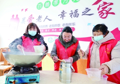 12月17日,在山东省临沂市沂南县铜井镇杜山社区孝善食堂,志愿者们在为社区内独居和行动不便的老人煮水饺。    为应对近期大范围寒潮和低温雨雪冰冻天气,各地、各部门采取多种措施,全力保障人民群众安全温暖过冬。    新华社发(王彦冰/摄)