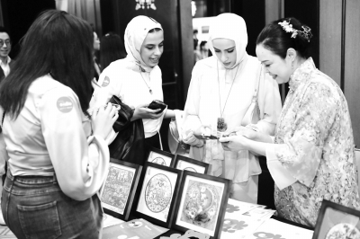 图为人们在埃及开罗举行的粤港澳大湾区世界级旅游目的地推介暨“魅力广东”视觉展上了解剪纸。 新华社记者 隋先凯/摄