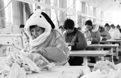 1月8日,在枣林村一家服装加工企业的生产车间,员工在赶制童装。    河南省洛阳市汝阳县柏树乡在积极发展村集体经济中,对农村妇女开展技能培训,通过发展服装出口加工创造就业岗位,使她们实现在家门口就业,拓宽增收渠道。    新华社发
