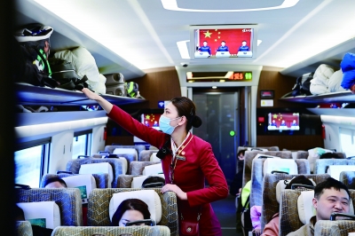 张瑞告诉记者,行车安全是第一位的。每次离站她都要对车内设备设施、细微角落进行检查,对行李摆放、小朋友跑跳、车内用电、禁烟等进行安全提示。“在安全的前提下,我们会对重点旅客,如:老人、儿童、残疾人、病人、孕妇等群体特别关照。”