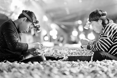1月29日,河北省滦州市小马庄镇一家蔬菜育苗合作社的社员在大棚内嫁接黄瓜秧苗。    近日,河北省滦州市的大棚果树陆续开花、蔬菜幼苗长势喜人,农民们开始抢抓农时对果树进行疏花授粉、嫁接蔬菜秧苗,大棚内呈现出一派繁忙的景象。近年来,该市大力引导农民采取“合作社+基地+农户”的模式,规模化、标准化发展大棚樱桃、黄瓜、西红柿等果蔬种植,促进农民增收,助力乡村振兴。新华社记者 杨世尧/摄