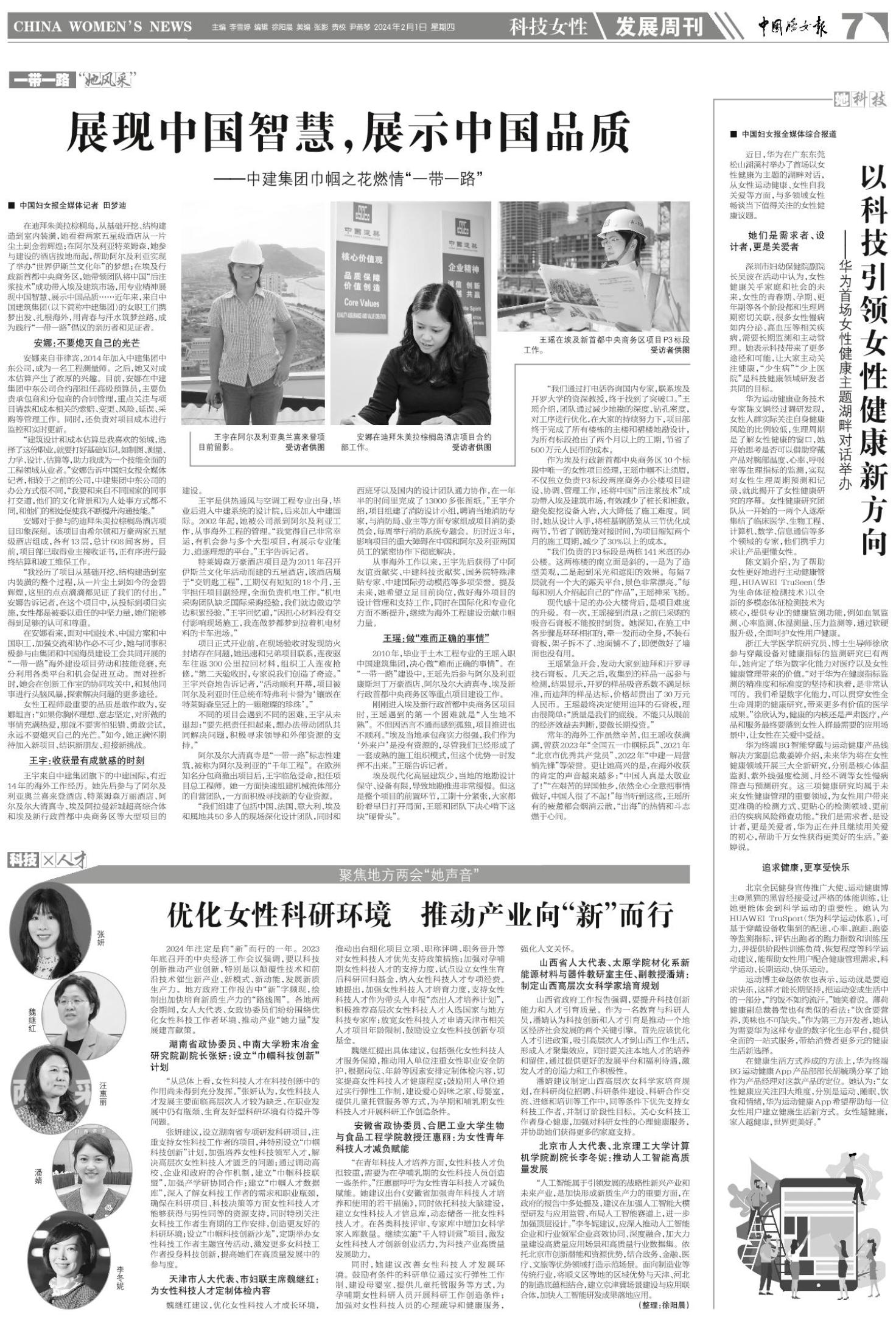 魏继红提出具体建议,包括强化女性科技人才服务保障,推动用人单位注重女性职业安全防护,根据岗位、年龄等因素安排定制体检内容,切实提高女性科技人才健康程度;鼓励用人单位通过实行弹性工作制,建设爱心妈咪之家、母婴室,提供儿童托管服务等方式,为孕期和哺乳期女性科技人才开展科研工作创造条件。