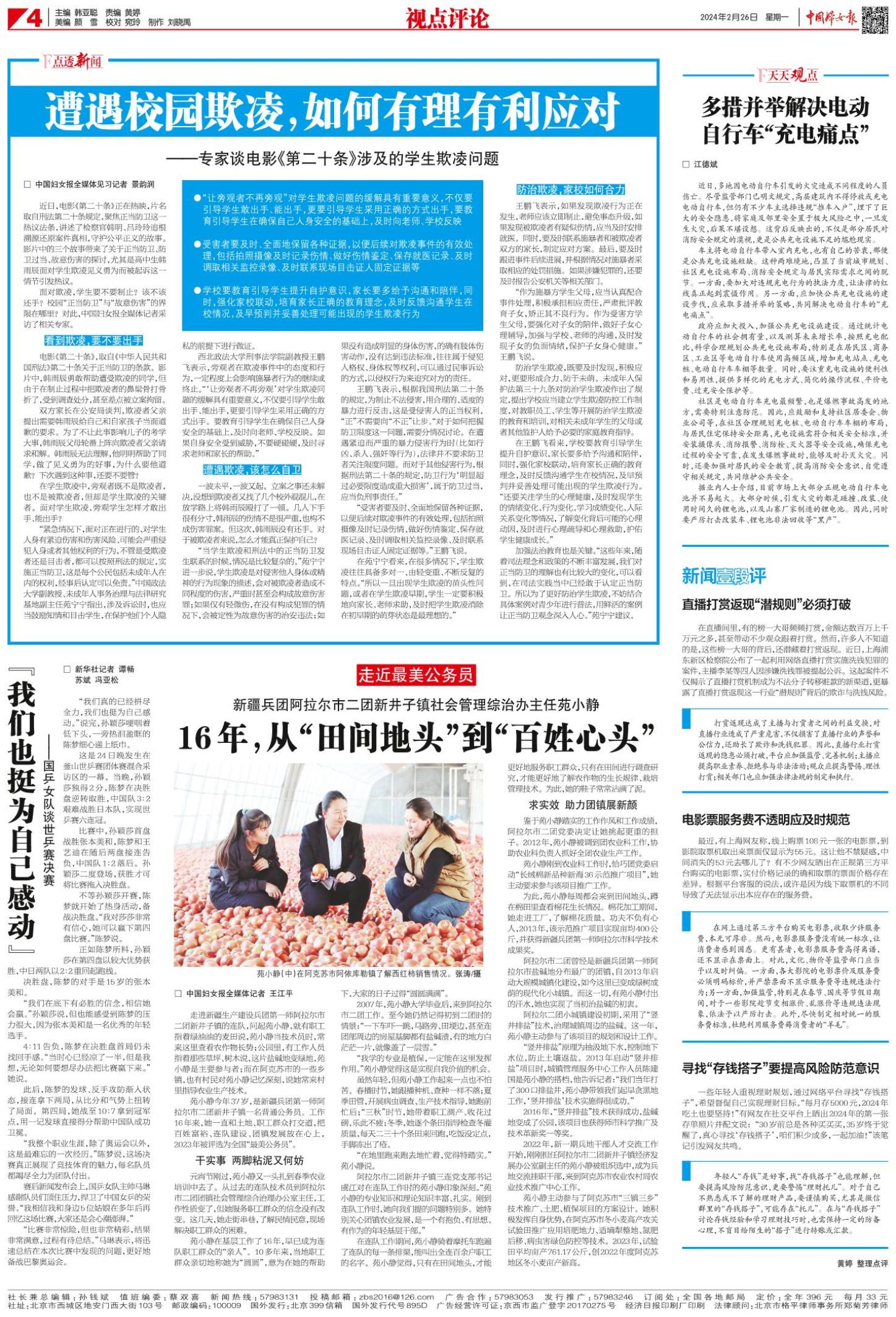 《中国妇女报》(电子版)的一切内容(包括但不限于文字、图片、PDF、图表、标志、标识、商标、版面设计、专栏目录与名称、内容分类标准以及为读者提供的任何信息)仅供中国妇女报读者阅读、学习研究使用,未经中国妇女报及/或相关权利人书面授权,任何单位及个人不得将《中国妇女报》(电子版)所登载、发布的内容用于商业性目的,包括但不限于转载、复制、发行、制作光盘、数据库、触摸展示等行为方式,或将之在非本站所属的服务器上作镜像。否则,中国妇女报将采取包括但不限于网上公示、向有关部门举报、诉讼等一切合法手段,追究侵权者的法律责任。