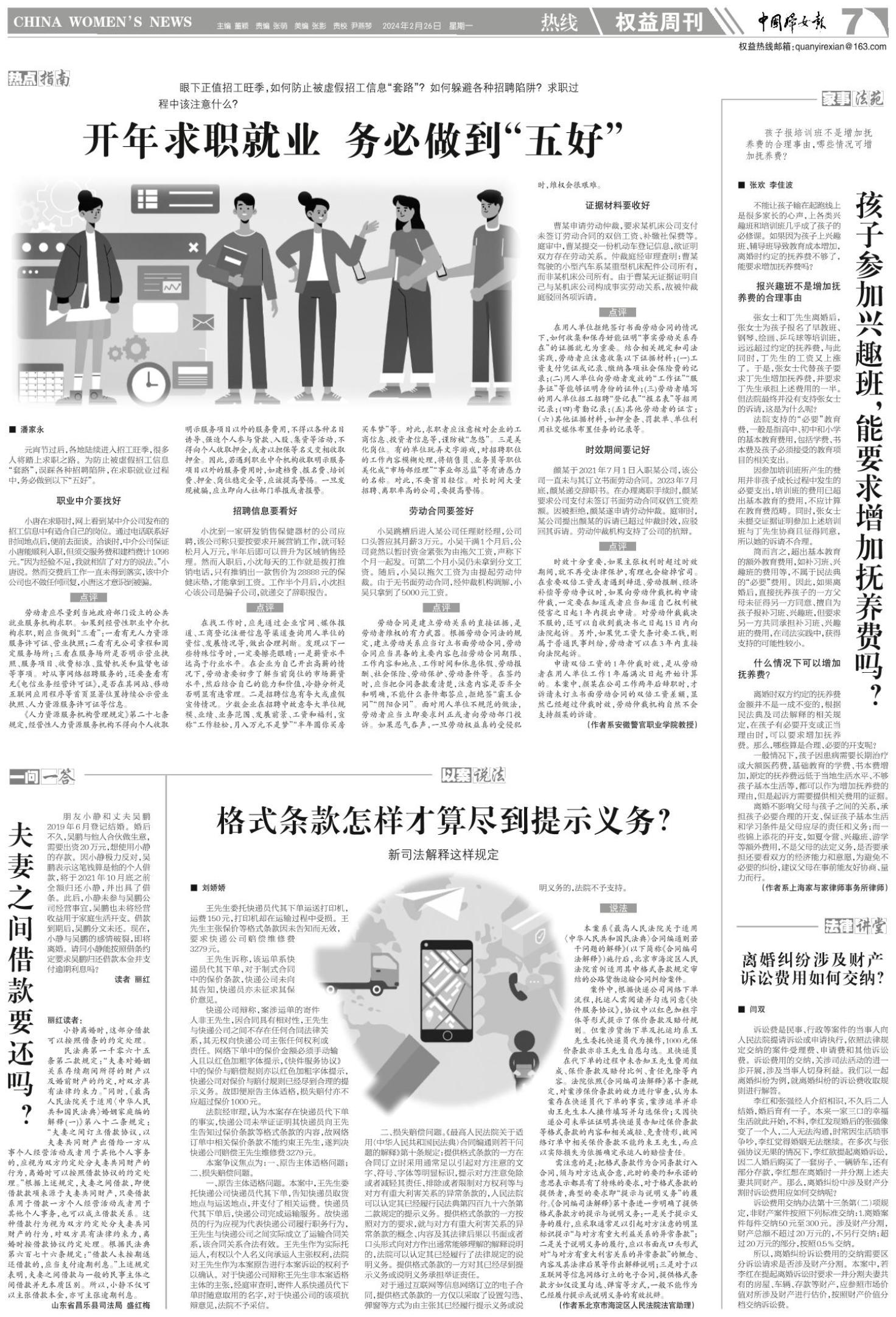 《中国妇女报》(电子版)的一切内容(包括但不限于文字、图片、PDF、图表、标志、标识、商标、版面设计、专栏目录与名称、内容分类标准以及为读者提供的任何信息)仅供中国妇女报读者阅读、学习研究使用,未经中国妇女报及/或相关权利人书面授权,任何单位及个人不得将《中国妇女报》(电子版)所登载、发布的内容用于商业性目的,包括但不限于转载、复制、发行、制作光盘、数据库、触摸展示等行为方式,或将之在非本站所属的服务器上作镜像。否则,中国妇女报将采取包括但不限于网上公示、向有关部门举报、诉讼等一切合法手段,追究侵权者的法律责任。
