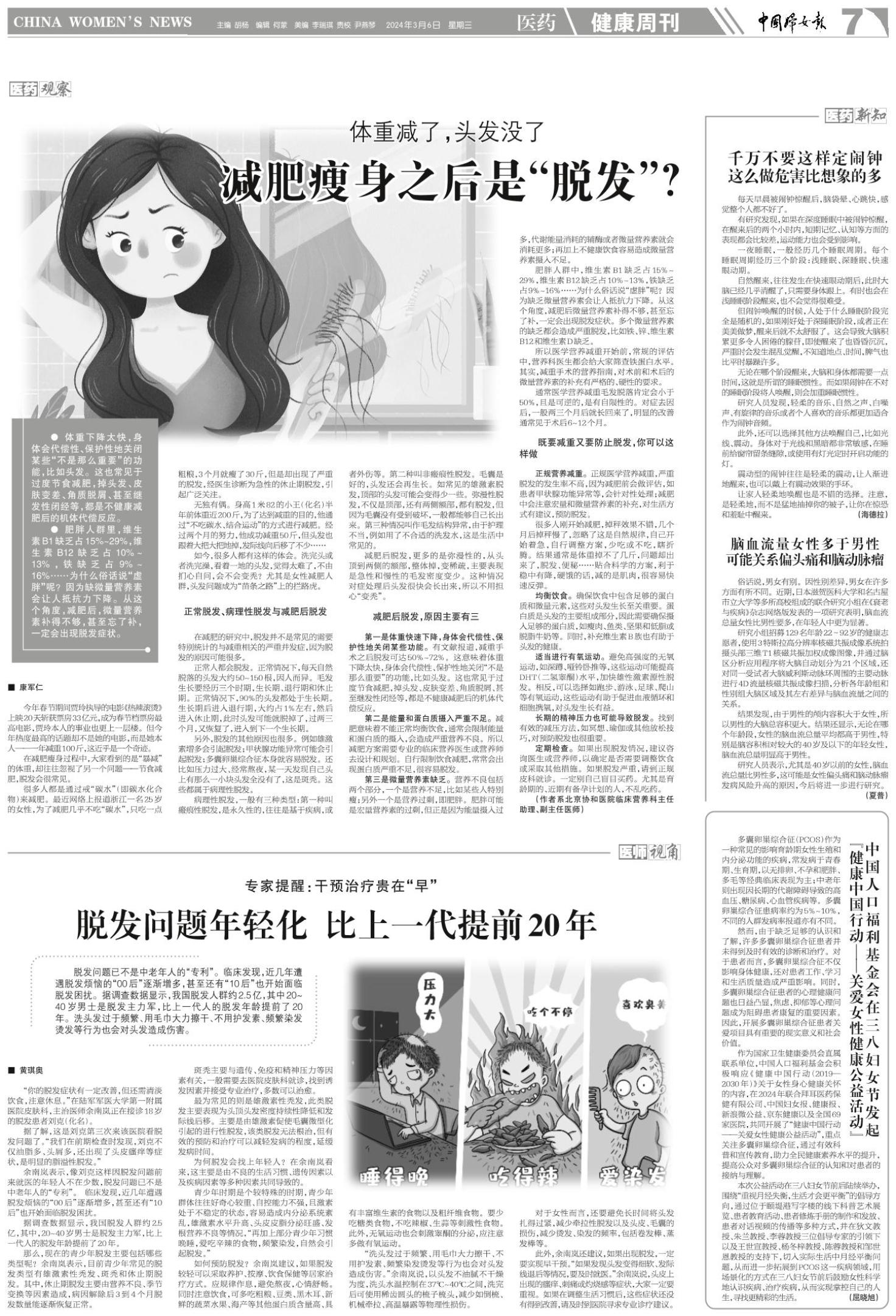 如今,很多人都有这样的体会。洗完头或者洗完澡,看着一地的头发,觉得太难了,不由扪心自问,会不会变秃?尤其是女性减肥人群,头发问题成为“苗条之路”上的拦路虎。