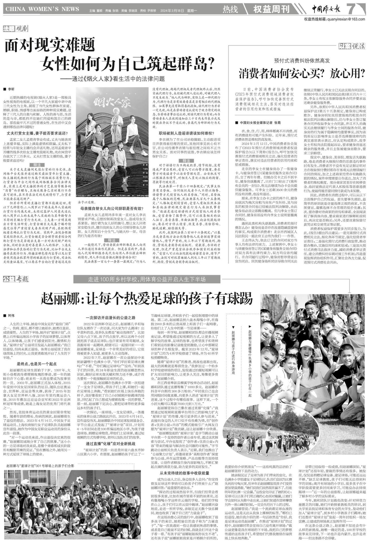 《中国妇女报》(电子版)的一切内容(包括但不限于文字、图片、PDF、图表、标志、标识、商标、版面设计、专栏目录与名称、内容分类标准以及为读者提供的任何信息)仅供中国妇女报读者阅读、学习研究使用,未经中国妇女报及/或相关权利人书面授权,任何单位及个人不得将《中国妇女报》(电子版)所登载、发布的内容用于商业性目的,包括但不限于转载、复制、发行、制作光盘、数据库、触摸展示等行为方式,或将之在非本站所属的服务器上作镜像。否则,中国妇女报将采取包括但不限于网上公示、向有关部门举报、诉讼等一切合法手段,追究侵权者的法律责任。
