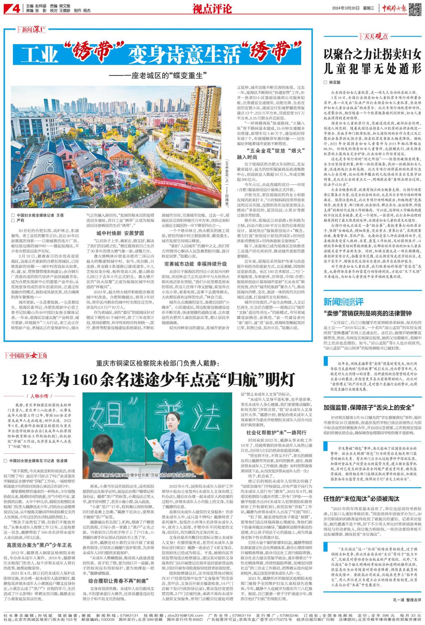 《中国妇女报》(电子版)的一切内容(包括但不限于文字、图片、PDF、图表、标志、标识、商标、版面设计、专栏目录与名称、内容分类标准以及为读者提供的任何信息)仅供中国妇女报读者阅读、学习研究使用,未经中国妇女报及/或相关权利人书面授权,任何单位及个人不得将《中国妇女报》(电子版)所登载、发布的内容用于商业性目的,包括但不限于转载、复制、发行、制作光盘、数据库、触摸展示等行为方式,或将之在非本站所属的服务器上作镜像。否则,中国妇女报将采取包括但不限于网上公示、向有关部门举报、诉讼等一切合法手段,追究侵权者的法律责任。