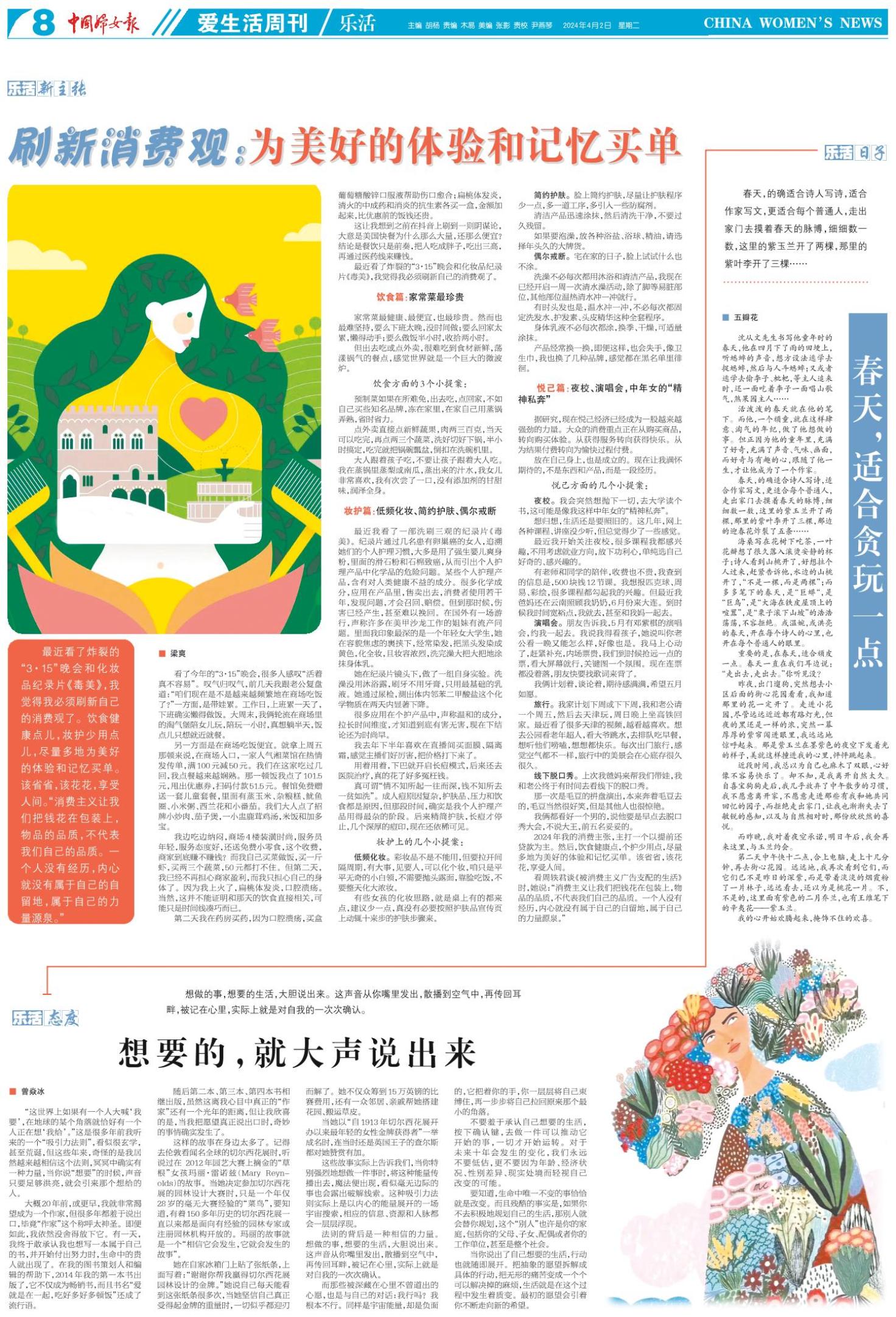 《中国妇女报》(电子版)的一切内容(包括但不限于文字、图片、PDF、图表、标志、标识、商标、版面设计、专栏目录与名称、内容分类标准以及为读者提供的任何信息)仅供中国妇女报读者阅读、学习研究使用,未经中国妇女报及/或相关权利人书面授权,任何单位及个人不得将《中国妇女报》(电子版)所登载、发布的内容用于商业性目的,包括但不限于转载、复制、发行、制作光盘、数据库、触摸展示等行为方式,或将之在非本站所属的服务器上作镜像。否则,中国妇女报将采取包括但不限于网上公示、向有关部门举报、诉讼等一切合法手段,追究侵权者的法律责任。