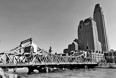 走出地铁就看见了天津市为迎接新世纪而建造的大型标识性城雕建筑“世纪钟”,与其相对的就是全钢结构的解放桥了。解放桥不仅是天津的交通枢纽,更是一座见证历史的重要地标。最初建于1902年,名为“万国桥”,因当时的天津有英、法、俄、美、德、日、意、奥、比九国租界。随着历史的变迁,桥名的变更也反映了天津历史的不同阶段——从最初的“万国桥”到后来的“中正桥”再到“解放桥”,它悄然承载了中国近代史上许多重要的历史事件,可谓中国桥梁建筑史上的“活化石”。