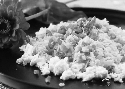 将1个咸鸭蛋加3个鸡蛋一起搅打均匀,加入姜粉,炒锅烧热,放橄榄油,油热后,倒入蛋液翻炒,炒好后,烹入两勺醋,起锅。