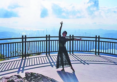 在梧桐山半山腰的一处观景台上,一位体态婀娜的女子在阳光下蹁跹起舞,她享受着山林间的清风,洋溢着青春的风采,绽放着自信,用曼美的舞姿释放心中的激情与快乐。她在表达自己内心的幸福,也在讴歌这个伟大的时代。