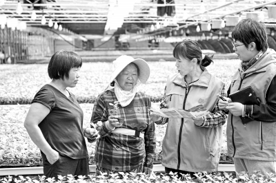 大兴区庞各庄镇东南次村政务服务站的工作人员来到四季阳坤农业园区为山东来的务工农民办理异地医保联通业务(4月9日摄)。 近期,北京市的西甜瓜生产基地大兴区庞各庄镇进入了春季西甜瓜生产大忙时节,当地各级政务服务中心工作人员主动深入田间、大棚和农家,为当地瓜农和外来务工农民提供就业信息、租房、社保、医保、农业补贴领取等服务,助力春季农业生产。 新华社记者 李欣/摄