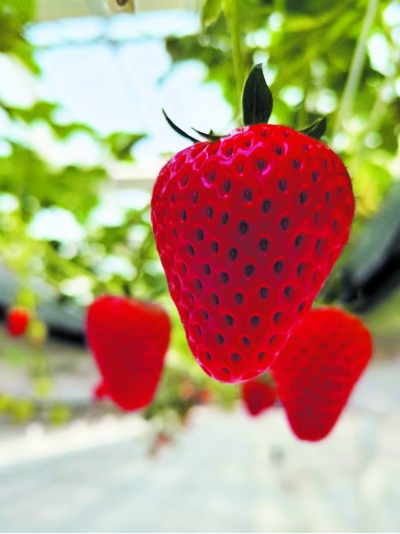 据内蒙古现代数字农业科技有限公司副总经理尚广飞介绍,现代数字农业科技产业园位于达拉特旗王爱召镇生成永村,先期投资2.4亿元,占地约330亩。“我们目前建成的空中草莓温室2.8万平方米,还有智能蔬菜工厂、特色瓜果温室、水果玉米加工车间等。空中草莓是运用国内目前最先进的无土栽培技术,高度还能上下升降,方便游客采摘。更为重要的是,我们下面有了一个巨大的活动空间,能吃能玩能运动,也可搞生态婚礼、大型团建活动等,让大家尽享草莓盛宴。”