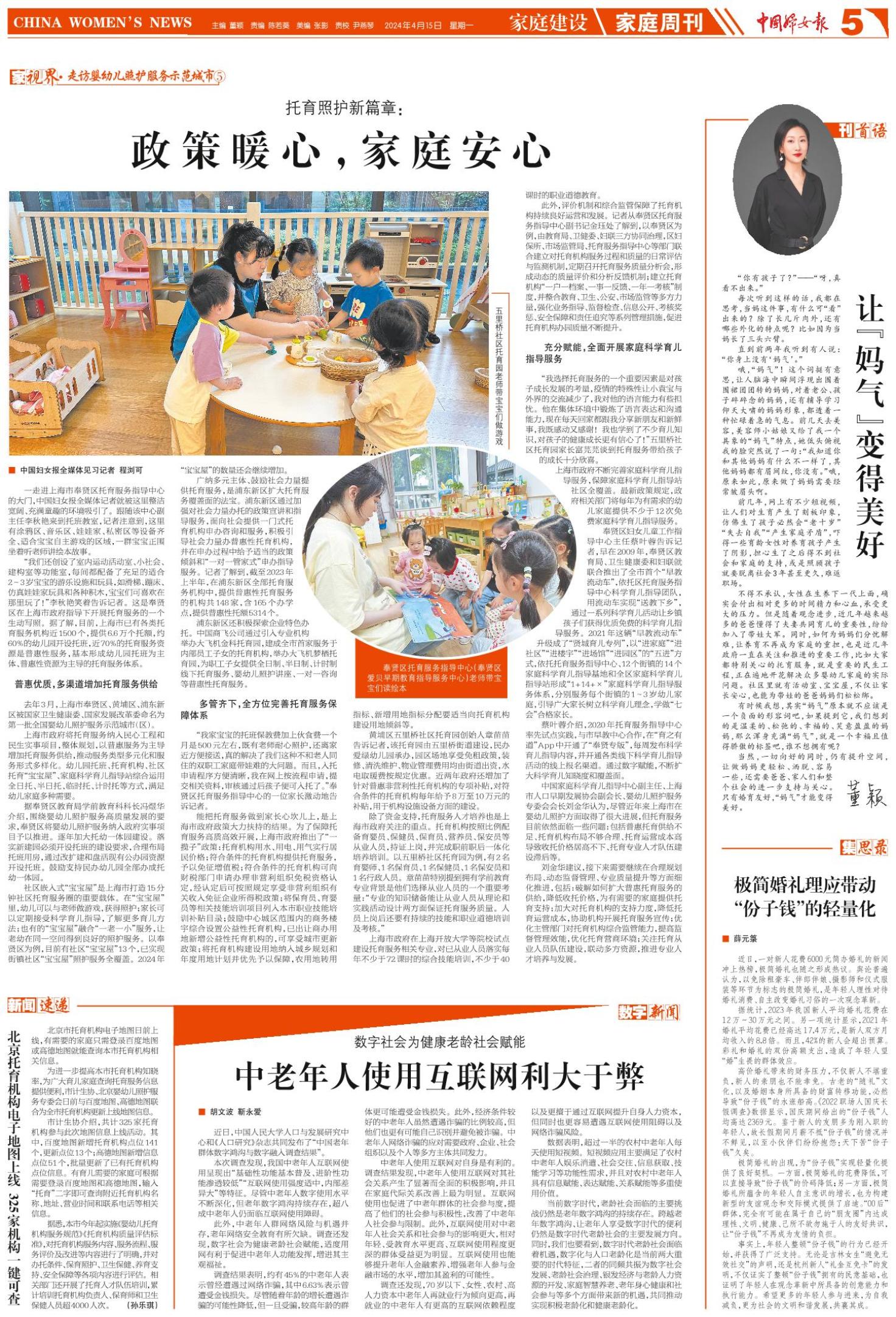 《中国妇女报》(电子版)的一切内容(包括但不限于文字、图片、PDF、图表、标志、标识、商标、版面设计、专栏目录与名称、内容分类标准以及为读者提供的任何信息)仅供中国妇女报读者阅读、学习研究使用,未经中国妇女报及/或相关权利人书面授权,任何单位及个人不得将《中国妇女报》(电子版)所登载、发布的内容用于商业性目的,包括但不限于转载、复制、发行、制作光盘、数据库、触摸展示等行为方式,或将之在非本站所属的服务器上作镜像。否则,中国妇女报将采取包括但不限于网上公示、向有关部门举报、诉讼等一切合法手段,追究侵权者的法律责任。