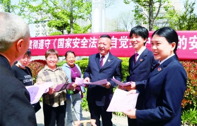 4月14日,河南省汝阳县人民检察院干警在刘伶广场向群众宣传国家安全知识。在第九个全民国家安全教育日即将到来之际,各地开展形式多样的主题宣传教育活动,提高人们的国家安全意识。    新华社发(康红军/摄)