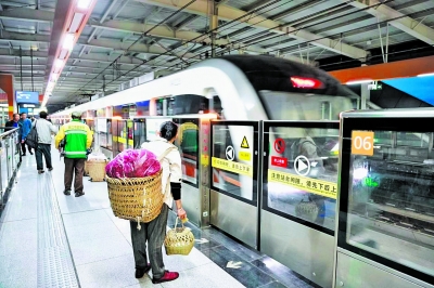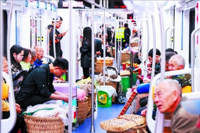 2022年6月,轨道交通4号线二期开通后,由于市区的菜价能卖高一点儿,菜销得也快,菜农们开始坐上地铁到城里卖菜。