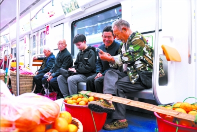不知不觉中,地铁一站站地停靠,不断有菜农起身,一边向熟悉的同伴打招呼,一边挑起箩筐,背上背篓,赶往熟悉的市场。一个个背篓菜筐里,载满了他们对美好生活的憧憬,也载满了城市带给他们的友善与温情。