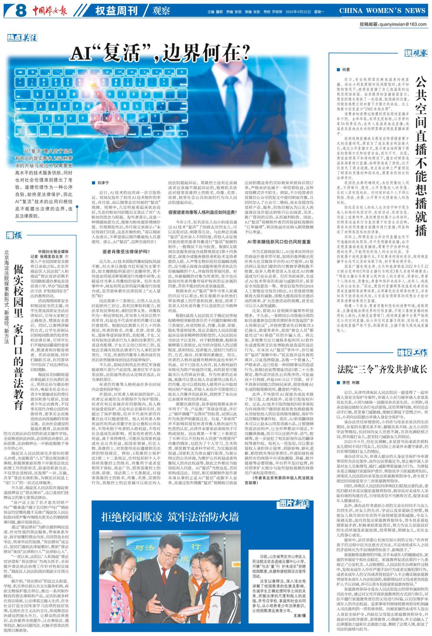 《中国妇女报》(电子版)的一切内容(包括但不限于文字、图片、PDF、图表、标志、标识、商标、版面设计、专栏目录与名称、内容分类标准以及为读者提供的任何信息)仅供中国妇女报读者阅读、学习研究使用,未经中国妇女报及/或相关权利人书面授权,任何单位及个人不得将《中国妇女报》(电子版)所登载、发布的内容用于商业性目的,包括但不限于转载、复制、发行、制作光盘、数据库、触摸展示等行为方式,或将之在非本站所属的服务器上作镜像。否则,中国妇女报将采取包括但不限于网上公示、向有关部门举报、诉讼等一切合法手段,追究侵权者的法律责任。