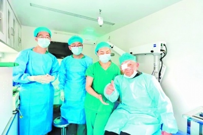 在喀什地区巴楚县琼库尔恰克乡,这台神奇的手术车也为13名白内障患者带来了新生。