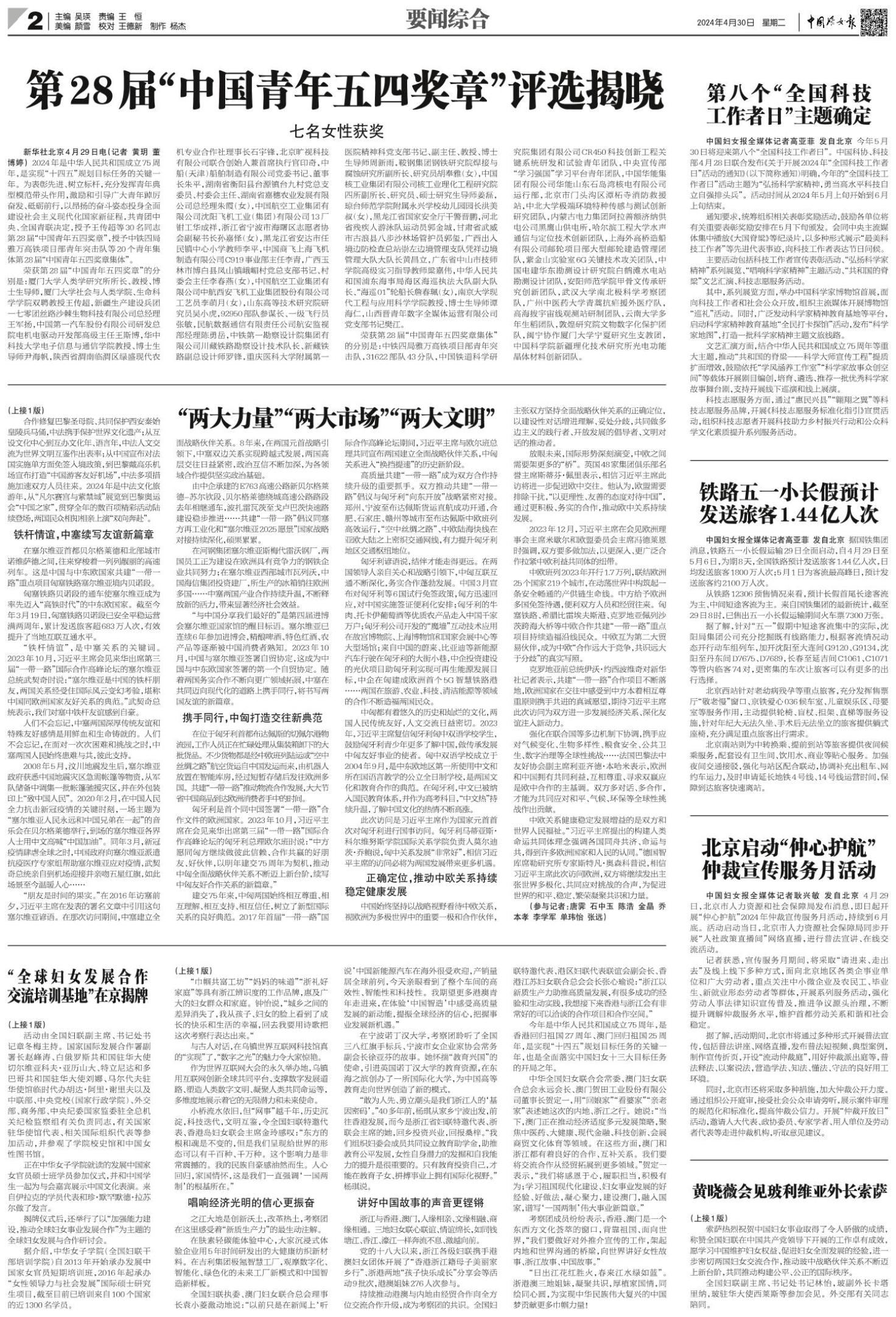 中国妇女报全媒体记者高亚菲 发自北京 据国铁集团消息,铁路五一小长假运输29日全面启动,自4月29日至5月6日,为期8天,全国铁路预计发送旅客1.44亿人次,日均发送旅客1800万人次;5月1日为客流最高峰日,预计发送旅客约2100万人次。