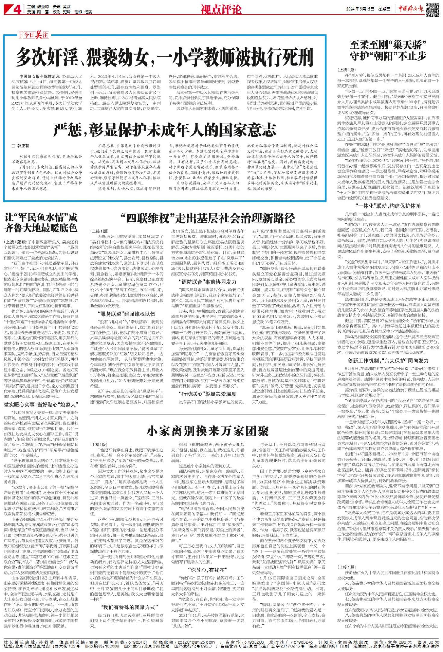 5月14日,多次奸淫、猥亵幼女的小学教师罗崇创被执行死刑。这是对社会公序良俗的坚决捍卫,传递出法律对于极端之恶严惩严处的坚定决心,彰显了严格保护未成年人的国家意志。