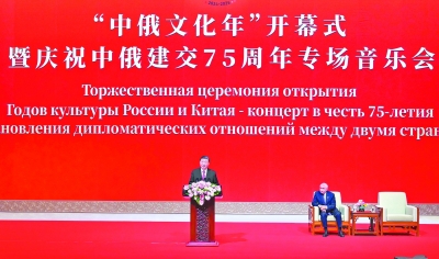 新华社北京5月16日电(记者 孙奕) 5月16日下午,国家主席习近平和俄罗斯总统普京在北京国家大剧院共同出席“中俄文化年”开幕式暨庆祝中俄建交75周年专场音乐会并致辞。