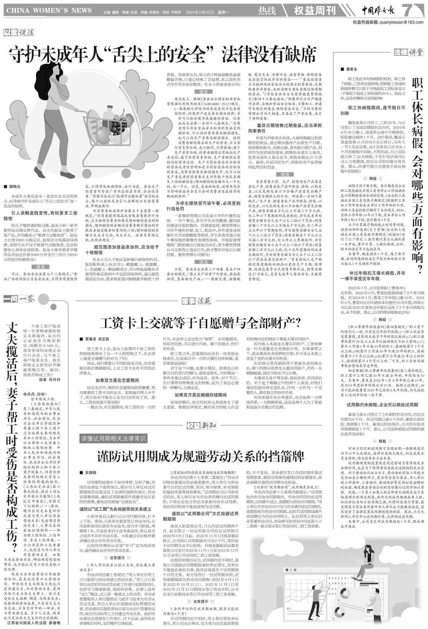 《中国妇女报》(电子版)的一切内容(包括但不限于文字、图片、PDF、图表、标志、标识、商标、版面设计、专栏目录与名称、内容分类标准以及为读者提供的任何信息)仅供中国妇女报读者阅读、学习研究使用,未经中国妇女报及/或相关权利人书面授权,任何单位及个人不得将《中国妇女报》(电子版)所登载、发布的内容用于商业性目的,包括但不限于转载、复制、发行、制作光盘、数据库、触摸展示等行为方式,或将之在非本站所属的服务器上作镜像。否则,中国妇女报将采取包括但不限于网上公示、向有关部门举报、诉讼等一切合法手段,追究侵权者的法律责任。