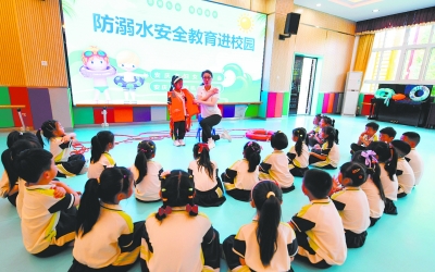 近日,安徽省安庆市妇联携手专业游泳教练安徽省三八红旗手潘敏等爱心志愿者,走进市政府机关幼儿园开展防溺水宣传活动。志愿者们通过现场互动和模拟心肺复苏急救等方式,为孩子们进行了防溺水安全教育宣讲。 黄有安 徐乐乐/摄