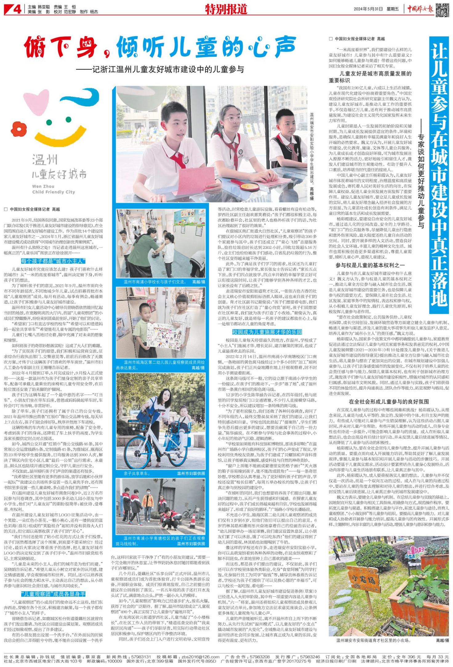 “一米高度看世界”,我们要建设什么样的儿童友好城市?儿童参与其中有什么重要意义?如何能够畅通儿童参与渠道?带着这些问题,中国妇女报全媒体记者采访了相关专家。
