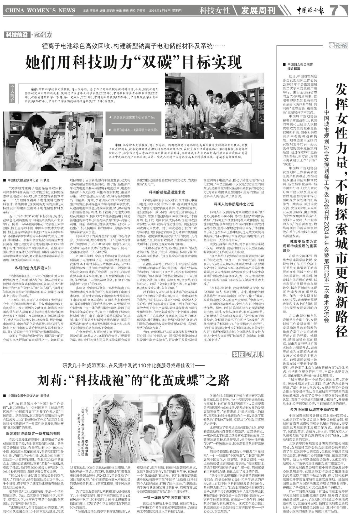 对于科研人来说,最有成就感的就是将基础研究成果转化落地应用,但这一步也是巨大的挑战。“通过与国内外研究院所、企业深入交流合作,我们将实验室开发的0到1的研究成果放大到工业生产规模,最终确保技术的可行性和经济性。”回忆起攻克的一个个难题,李丽感慨万千,“这些离不开团队的共同努力和不懈探索,我们相信,通过持续的研究和创新,我们能够为电池回收领域带来更加环保、高效和经济的解决方案。”