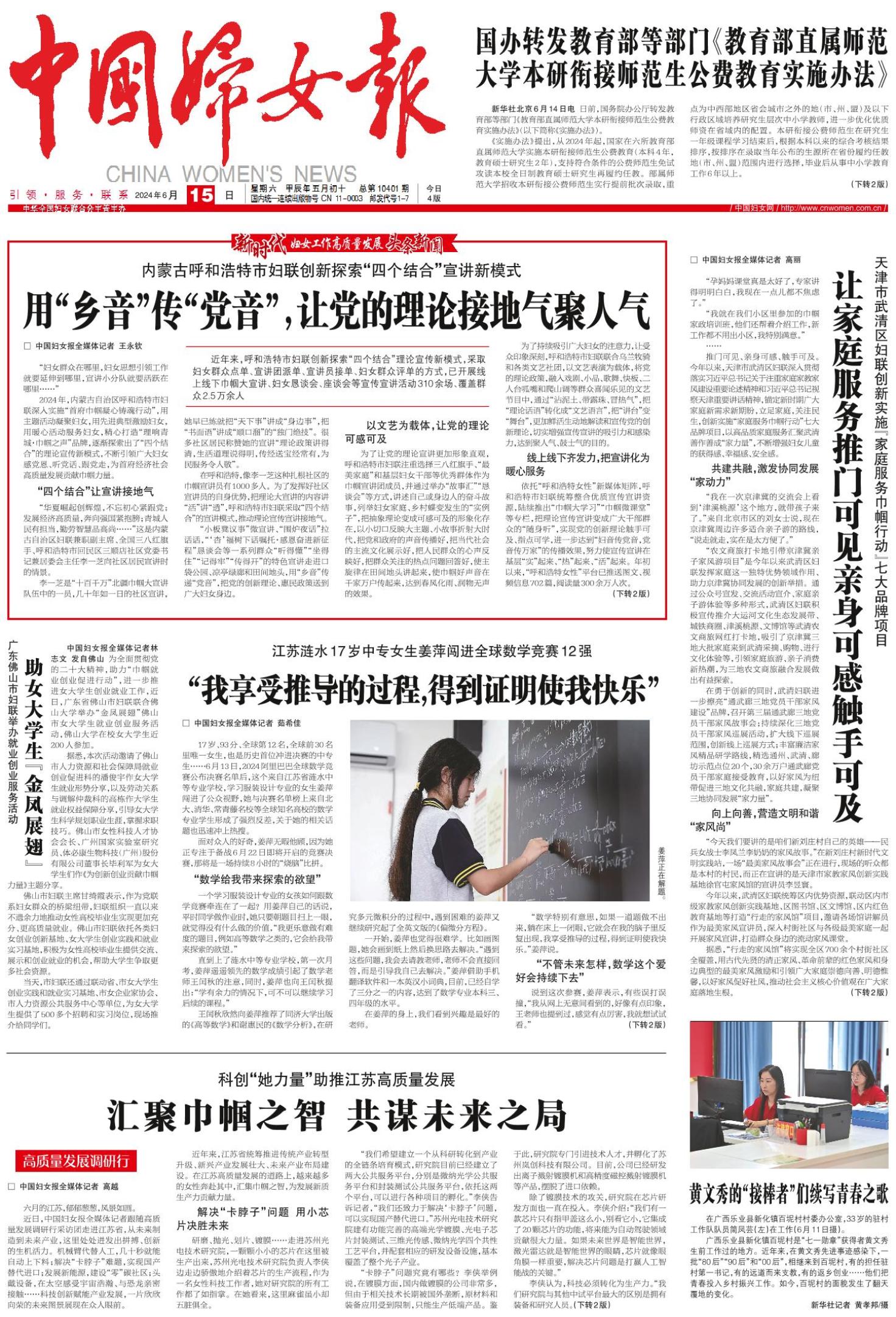 《中国妇女报》(电子版)的一切内容(包括但不限于文字、图片、PDF、图表、标志、标识、商标、版面设计、专栏目录与名称、内容分类标准以及为读者提供的任何信息)仅供中国妇女报读者阅读、学习研究使用,未经中国妇女报及/或相关权利人书面授权,任何单位及个人不得将《中国妇女报》(电子版)所登载、发布的内容用于商业性目的,包括但不限于转载、复制、发行、制作光盘、数据库、触摸展示等行为方式,或将之在非本站所属的服务器上作镜像。否则,中国妇女报将采取包括但不限于网上公示、向有关部门举报、诉讼等一切合法手段,追究侵权者的法律责任。