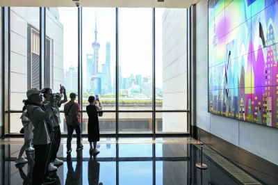 6月16日,市民在上海世界会客厅拍照。    当日,位于上海虹口北外滩的世界会客厅迎来首个公众开放日,众多市民前来参观体验。世界会客厅原址是拥有百年历史的扬子江码头,这一历史风貌建筑群由三栋楼组成,建筑面积9.9万平方米。自今年7月起,世界会客厅将在每月最后一周的周六定期向公众开放。    新华社记者 王翔/摄