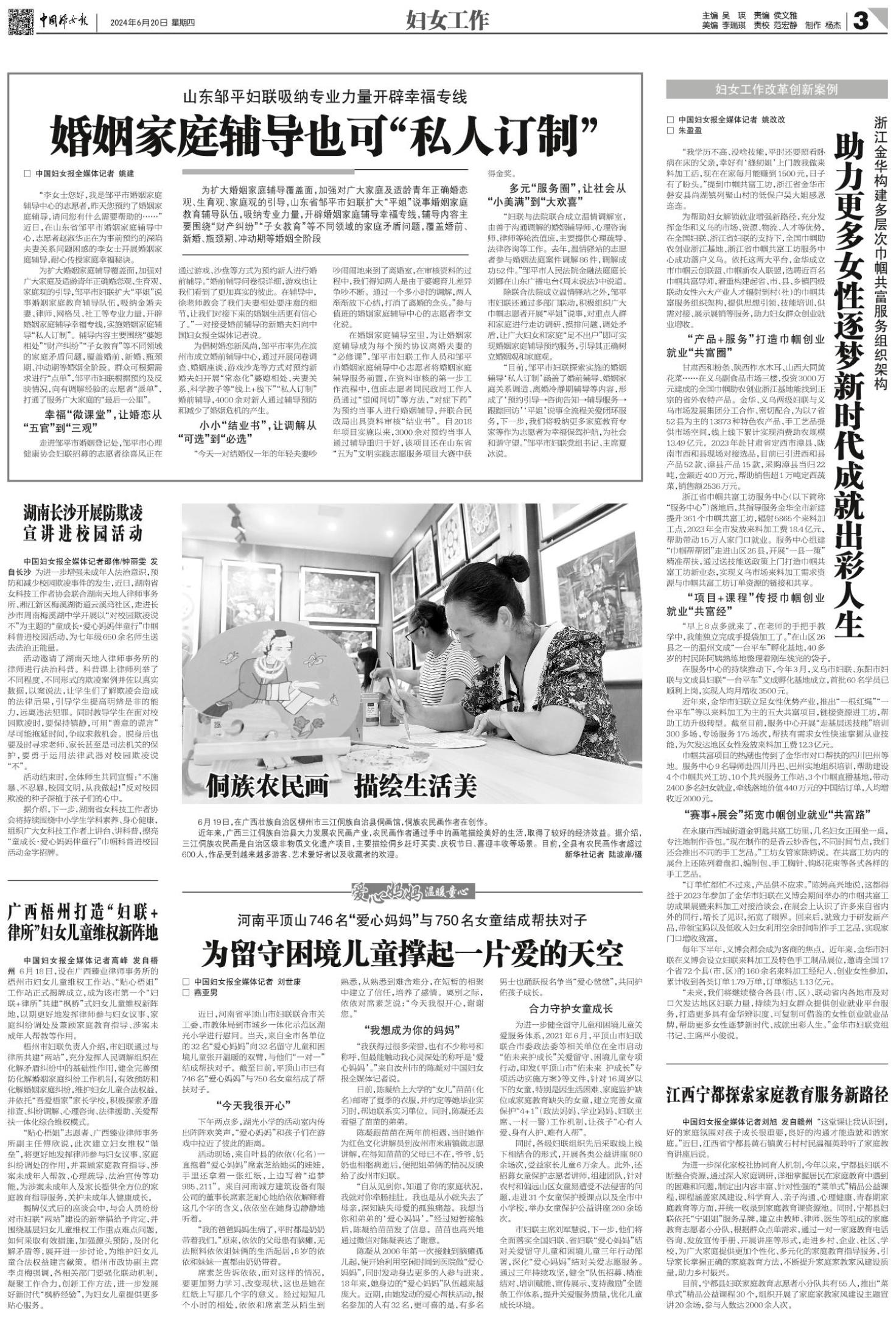 《中国妇女报》(电子版)的一切内容(包括但不限于文字、图片、PDF、图表、标志、标识、商标、版面设计、专栏目录与名称、内容分类标准以及为读者提供的任何信息)仅供中国妇女报读者阅读、学习研究使用,未经中国妇女报及/或相关权利人书面授权,任何单位及个人不得将《中国妇女报》(电子版)所登载、发布的内容用于商业性目的,包括但不限于转载、复制、发行、制作光盘、数据库、触摸展示等行为方式,或将之在非本站所属的服务器上作镜像。否则,中国妇女报将采取包括但不限于网上公示、向有关部门举报、诉讼等一切合法手段,追究侵权者的法律责任。