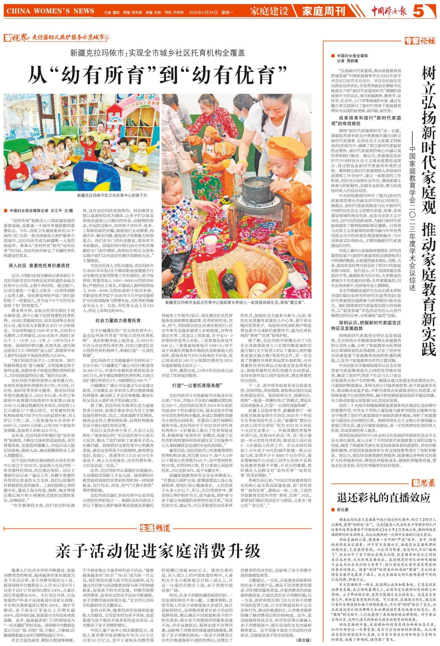 李湘告诉记者:“中国式学前教育现代化的核心是实现高质量发展,即‘幼有善育’‘幼有优育’,要保证一孩、二孩、三孩的学前教育实现科学的‘善育、优育’,对此,需要我们做好顶层设计与规划,让家长‘放心托’‘安心托’。”