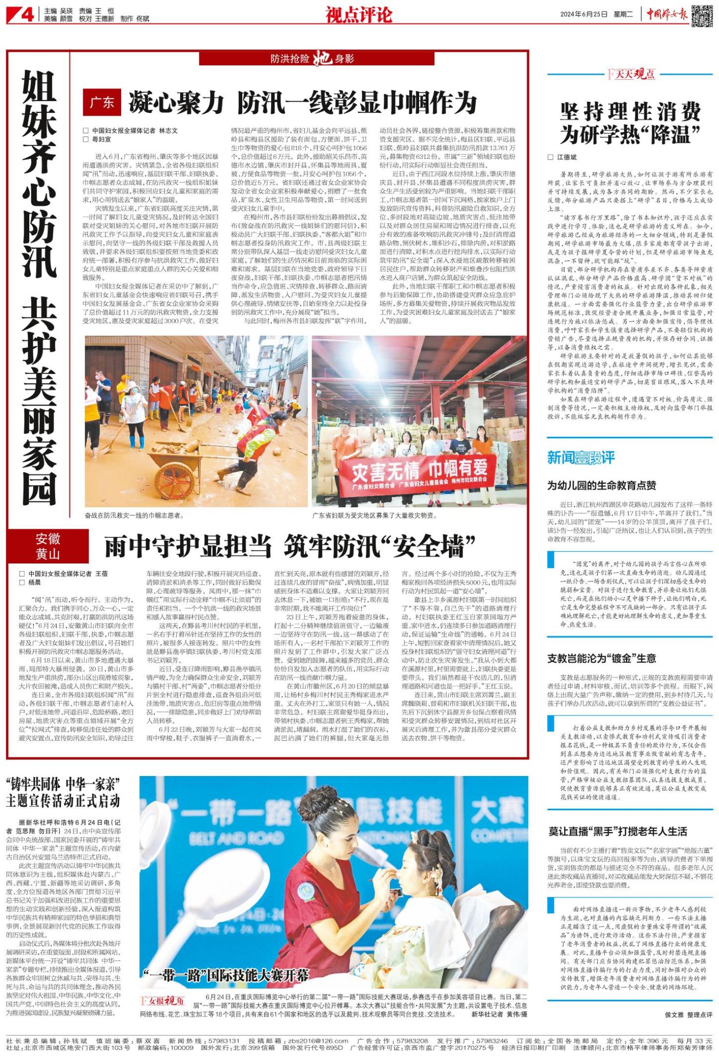 《中国妇女报》(电子版)的一切内容(包括但不限于文字、图片、PDF、图表、标志、标识、商标、版面设计、专栏目录与名称、内容分类标准以及为读者提供的任何信息)仅供中国妇女报读者阅读、学习研究使用,未经中国妇女报及/或相关权利人书面授权,任何单位及个人不得将《中国妇女报》(电子版)所登载、发布的内容用于商业性目的,包括但不限于转载、复制、发行、制作光盘、数据库、触摸展示等行为方式,或将之在非本站所属的服务器上作镜像。否则,中国妇女报将采取包括但不限于网上公示、向有关部门举报、诉讼等一切合法手段,追究侵权者的法律责任。