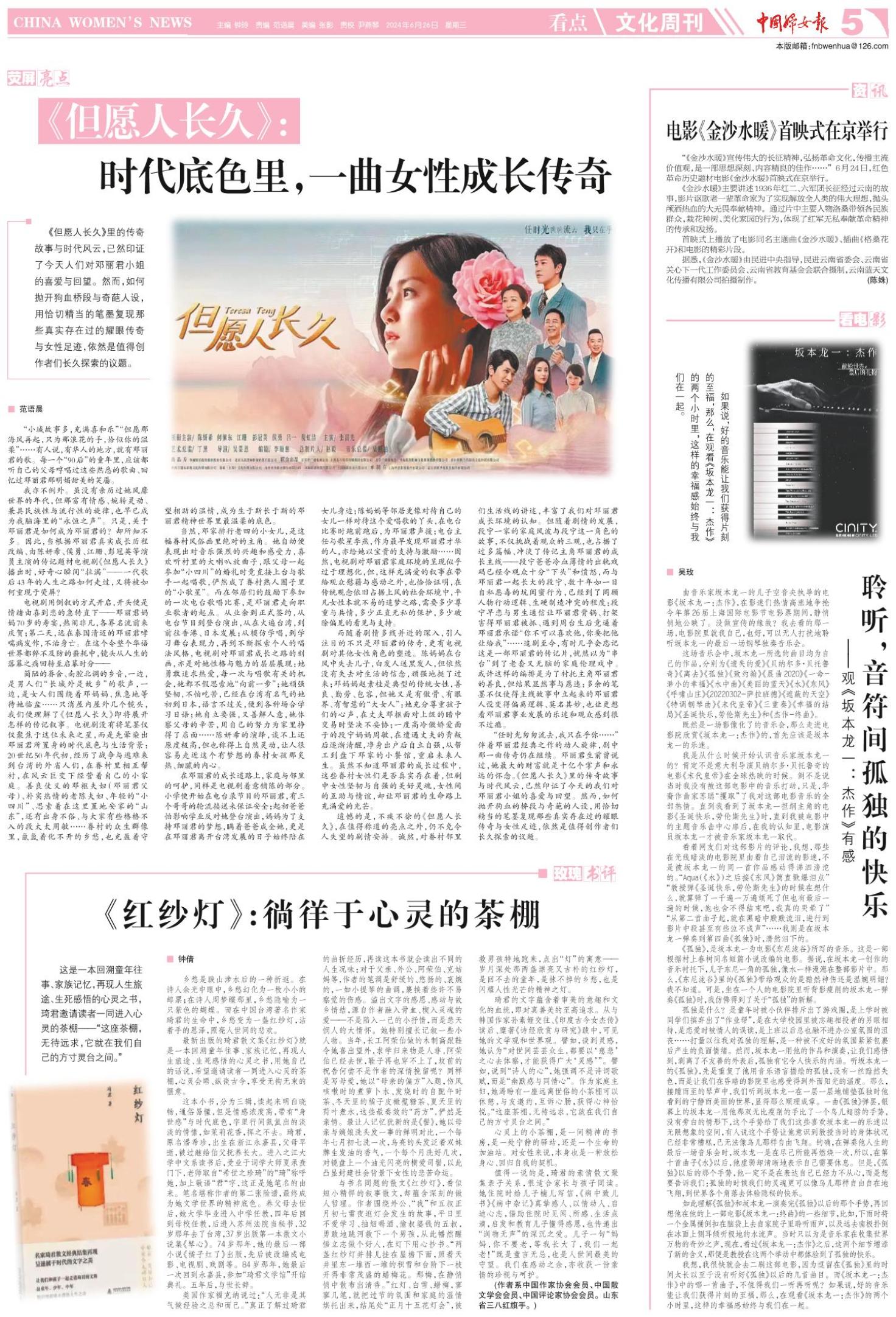 “任时光匆匆流去,我只在乎你……”伴着邓丽君经典之作的动人旋律,剧中那一曲传奇仍在继续。邓丽君生前曾说过,她最大的财富就是十亿个掌声和永远的怀念。《但愿人长久》里的传奇故事与时代风云,已然印证了今天的我们对邓丽君小姐的喜爱与回望。然而,如何抛开狗血的桥段与奇葩的人设,用恰切精当的笔墨复现那些真实存在过的耀眼传奇与女性足迹,依然是值得创作者们长久探索的议题。