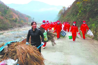 朱先萍就是这样一位女子。56岁的她是旬阳县双河镇高坪社区爱心志愿护河队的队长。从小生长在蜀河岸边的她,十分喜爱家乡山清水秀的自然环境,眼里容不得它受到丝毫污染,只要发现垃圾,便会俯身拾起,这已经是她几十年来保持的习惯。