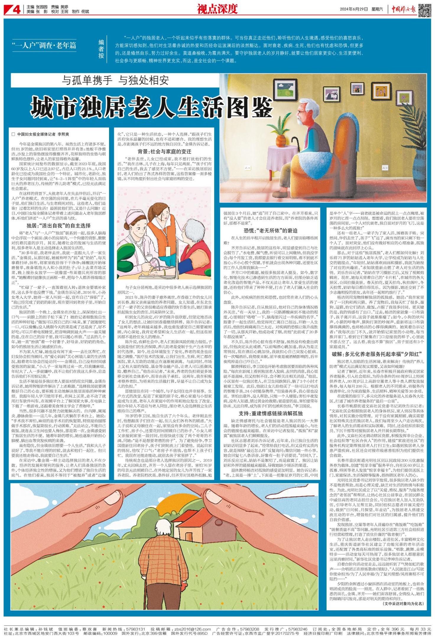 “一人户”的独居老人,一个听起来似乎有些落寞的群体。可当你真正走近他们,聆听他们的人生境遇,感受他们的喜怒哀乐,方能深切感知到,他们对生活最赤诚的热爱和历经命运波澜后的淡然豁达。面对衰老、疾病、生死,他们也有忧虑和恐惧,但更多的,还是翛然自乐,努力过好余生。莫道桑榆晚,为霞尚满天。要守护独居老人的岁月静好,就要让他们居家更安心、生活更便利、社会参与更顺畅、精神世界更充实,而这,是全社会的一个课题。
