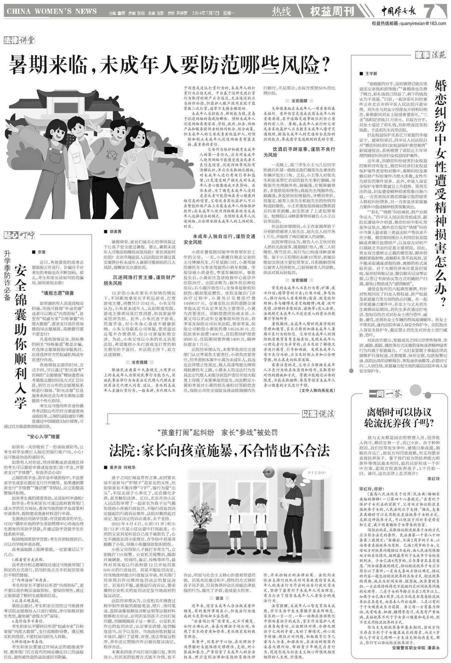 《中国妇女报》(电子版)的一切内容(包括但不限于文字、图片、PDF、图表、标志、标识、商标、版面设计、专栏目录与名称、内容分类标准以及为读者提供的任何信息)仅供中国妇女报读者阅读、学习研究使用,未经中国妇女报及/或相关权利人书面授权,任何单位及个人不得将《中国妇女报》(电子版)所登载、发布的内容用于商业性目的,包括但不限于转载、复制、发行、制作光盘、数据库、触摸展示等行为方式,或将之在非本站所属的服务器上作镜像。否则,中国妇女报将采取包括但不限于网上公示、向有关部门举报、诉讼等一切合法手段,追究侵权者的法律责任。